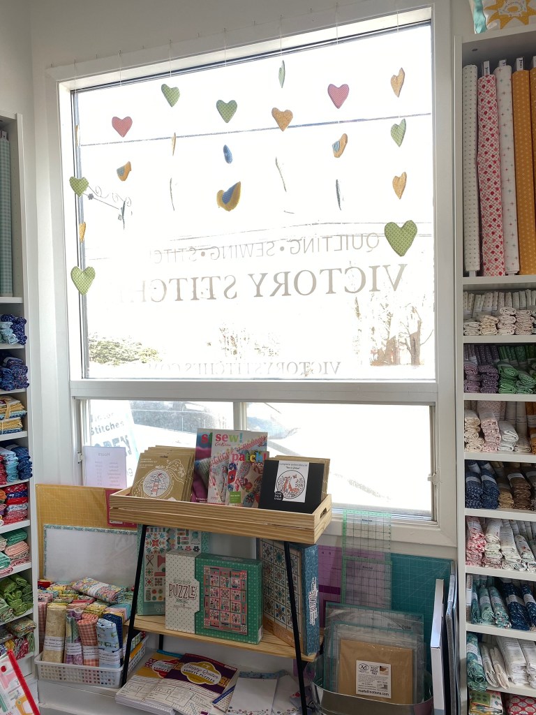 Here is how to make the cheery window mobiles I have at the shop. They are simple and cute as heck!