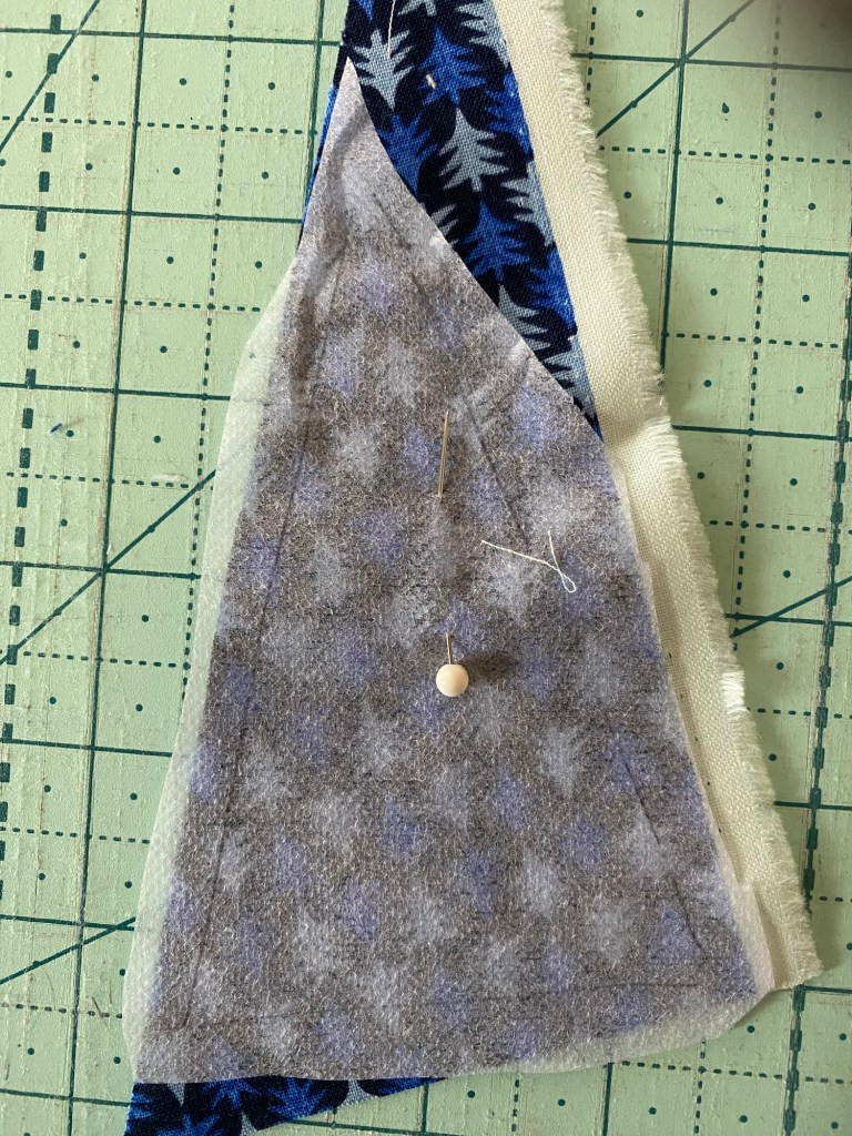 Lay out your back piece and place the trees and mushrooms where you want and pin in place.