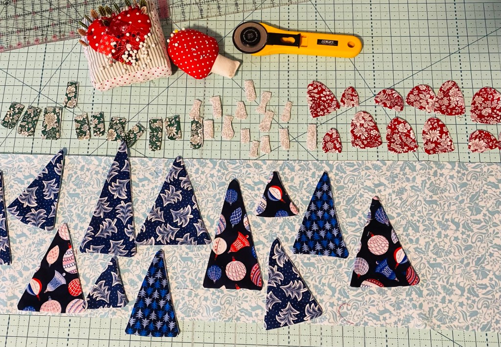 For appliqué shapes I like to draw the shapes on card stock so I can keep the templates. Mushroom and trees are easy as there’s no set shape. I have videos on my YouTube channel on how to make & sew the appliqués and how I finish runners
