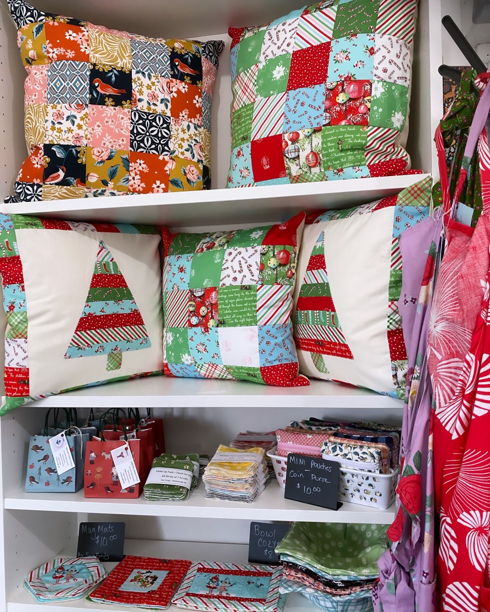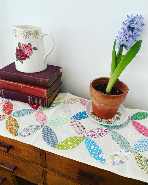 For appliqué shapes I like to draw the shapes on card stock so I can keep the templates. Mushroom and trees are easy as there’s no set shape. I have videos on my YouTube channel on how to make & sew the appliqués and how I finish runners